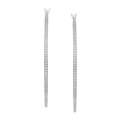 Sparkling round diamonds line these timeless hoop earrings for her. Fashioned in sterling silver, the earrings have a total diamond weight of 1/3 carat and fasten with hinged backs.