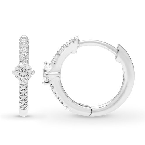 You'll love the wear-with-everything style and brilliant sparkle of these diamond hoop earrings. Radiant round-cut diamonds are centered on the fronts amidst shimmering lines of more round diamonds. Styled in iconic 10K white gold, the earrings have a total diamond weight of 1/4 carat and secure with hinged backs.