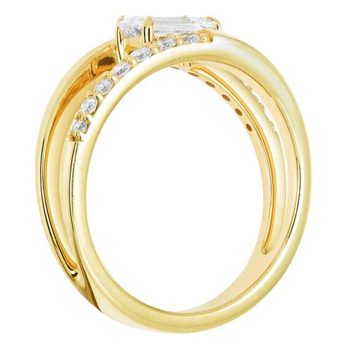 Add more twinkle to her fashion ring with this dazzling enhancer ring. Finished in sterling silver with yellow gold plating, this ring has a a total lab-grown diamond of 1.50ct.
