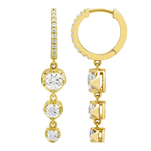 1 cttw Lab Grown Diamond Three Stone Drop Huggie Hoop Earrings