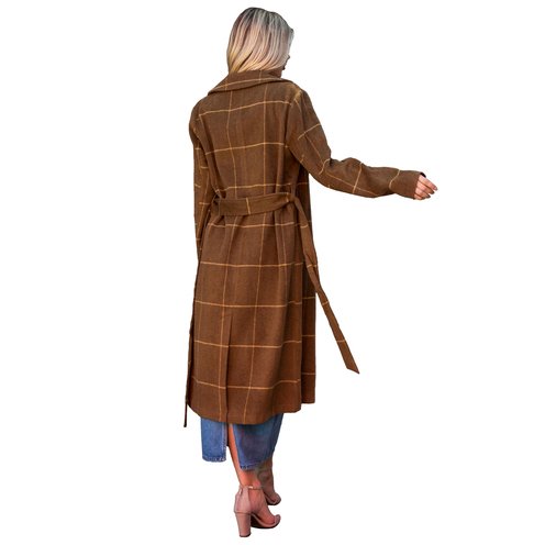 A long, luxe wool-blend coat with timeless plaid and a flattering self-tie belt. Warmth, shape, and sophistication in one effortless layer.