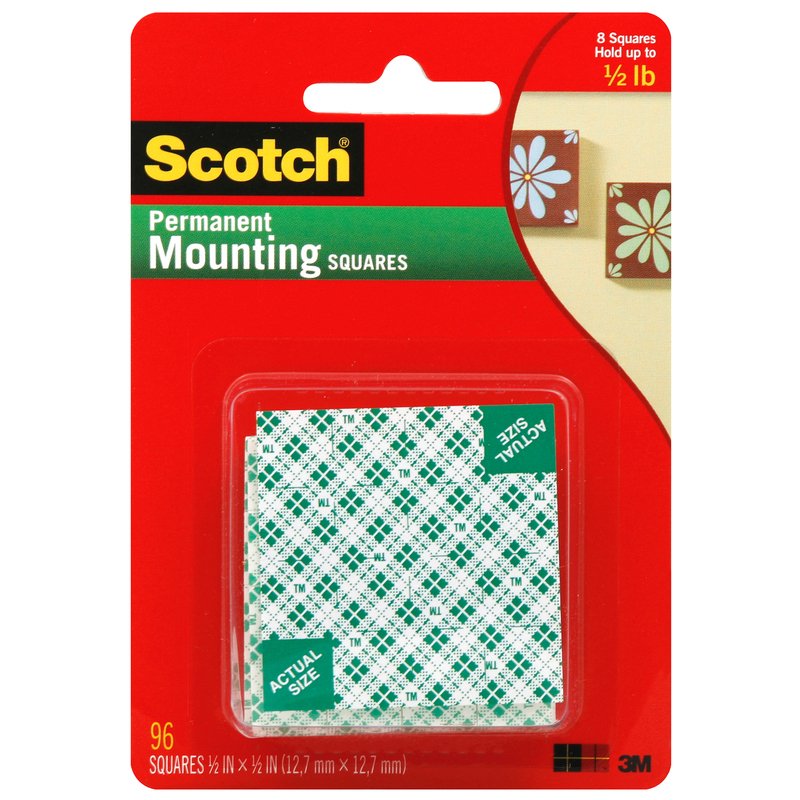 Use Scotch Mounting Squares to wall mount pictures, decorations and more, without using screws or nails. Adheres to most surfaces.