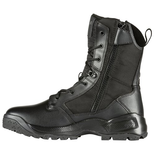 The boot worn by the world’s leading public safety personnel, the 5.11® A.T.A.C., just got promoted. It’s lighter and more comfortable, yet maintains its reputation for toughness and durability. A new air flow tongue and full-length dual durometer Ortholite® footbed work to keep your feet cool, dry and comfortable all day, every day. Another new feature, the Achilles heel flex zone, gives a critical part of your foot more range of motion without compromising support. The full-grain leather toe, 840D nylon upper and shock mitigation system provide the kind of rugged protection you need; while the knife pocket keeps an important ally within reach.
