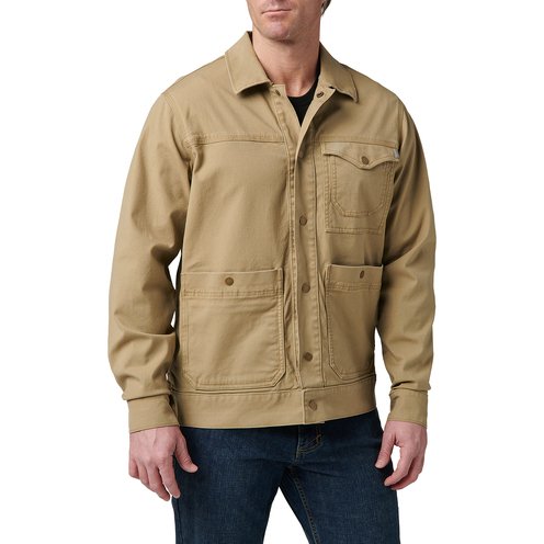 Selecting the right utility jacket has always been a headache until now. Our unlined, lightweight Rosser Jacket is constructed from 97% cotton and 3% elastane canvas for ruggedness and freedom of movement. Trimmed with a fold-down collar and adjustable snap cuffs, this all-purpose jacket features an enzyme wash for long-lasting style. A center front RAPIDraw™ snap placket provides quick access to a CCW. Other EDC essentials are always at hand thanks to the top-entry double chest pocket, top-entry patch pockets with snap closures, and an internal zippered stash pocket. Convenient side-entry hand pockets are a cool-weather bonus. A perfect grab-n-go outer layer, the Rosser Jacket pairs well with 5.11® Defender-Flex Jeans.
