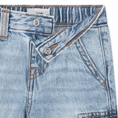 A roomy baggy fit gives these jeans a relaxed, easygoing feel. Cargo pockets add a cool utility touch while keeping the look playful. A fun denim style with everyday comfort built in.
