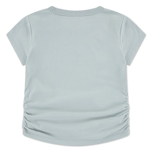 Crafted from soft cotton-blend fabric, this tee features a ruched sides for a flattering touch. The floral script graphic adds a playful detail. A casual top that pairs easily with jeans or skirts.