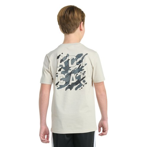 Give his t-shirt drawer an upgrade with this boys' adidas short sleeve t-shirt. The all-cotton fabric is soft and comfortable. A ribbed crewneck plus a regular cut make this tee a classic that's fun to wear.