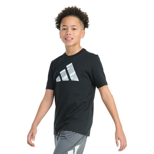 Give his t-shirt drawer an upgrade with this boys' adidas short sleeve t-shirt. The soft cotton fabric displays a 3 Bar Logo filled with a camo print. A ribbed crewneck plus a regular cut make this tee a classic that's fun to wear.