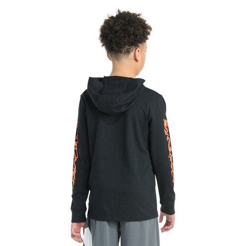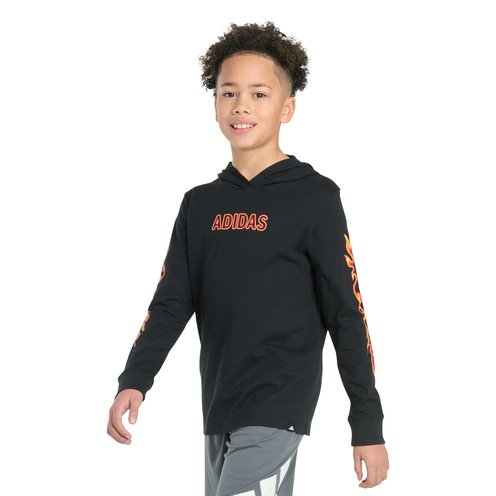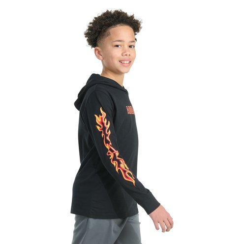 The '00s are calling. They want their flame t-shirt back. Beyond the throwback appeal of this boys' graphic shirt is a comfortable hooded tee for school and weekend lounging. The soft cotton fabric is cut for a regular fit.