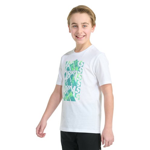 Triple the style points. This boys' short sleeve t-shirt displays triple-stacked adidas logos. A comfortable cotton tee for downtime or anytime, it has a soft feel and a regular fit.