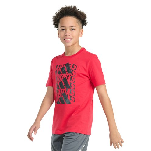 Triple the style points. This boys' short sleeve t-shirt displays triple-stacked adidas logos. A comfortable cotton tee for downtime or anytime, it has a soft feel and a regular fit.