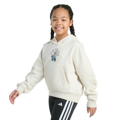 Cozy comfort meets cool style in this girls' adidas hoodie. The loose cut gives kids room to move, while the soft cotton-blend fleece fabric feels great all day. Fun graphics add a playful touch.