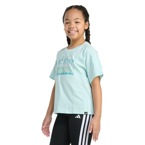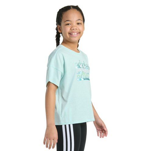 Graphic tees are an easy way to add self-expression to an outfit. This girls' adidas t-shirt is a prime example, with fun graphics on the soft cotton fabric. Drop shoulders and a loose cut give it extra style points — and comfort points, too.