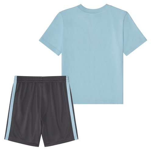 Get your little one ready for action with this dynamic two-piece set from adidas. Featuring a bold graphic tee with a photoreal baseball field design and sporty matching shorts, this outfit is designed to inspire in style. The top is crafted from a soft jersey material, while the shorts are made of closed hole mesh for enhanced comfort. The shorts have an elastic waistband for a snug fit, and the shirt has a regular fit for a comfortable feel. With the iconic 3-Stripes on the shorts for a sporty look, and bold baseball graphics on the tee, this set is a great wardrobe addition for young athletes ready to play.