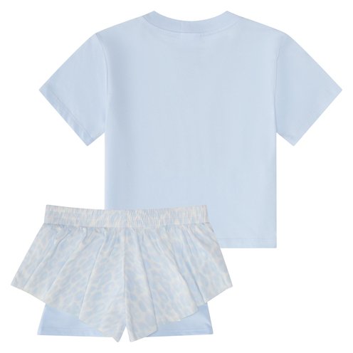Let your little one shine in this playful two-piece set from adidas. The set includes a short sleeve tee with a fun animal print adidas logo and a flowy short with a matching all-over animal print pattern. Designed for comfort and style, the tee is made from soft jersey fabric, while the shorts feature a lightweight blend with an elastic waistband for easy movement. The shorts have a high-low hem, creating a fun and flouncy feel, while a bike short underlayer provides coverage and supports free play. Good for both playdates and casual outings, this set is a delightful addition to your child's wardrobe.