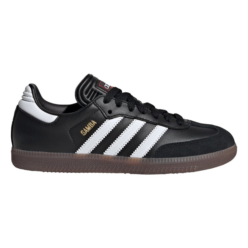 Returning to their football roots. Long before they became a streetwear staple, adidas Samba boots served as a durable training boot for icy and hard outdoor surfaces. With a hardwearing leather upper and a grippy rubber outsole, these juniors' boots are designed for running rings around your opponents on indoor courts.