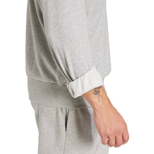 Experience the comfort of the Essentials FeelCozy French Terry Sweatshirt, designed for the modern man. Crafted from a blend of 70% Better Cotton and 30% recycled Polyethylene Terephthalate, this regular fit sweatshirt is made with recycled and renewable materials, showcasing adidas' commitment to sustainability. With its updated fit, dropped shoulder and armhole, and slightly shortened back length, it offers a modern design and clean, versatile style for an easy, everyday look. The embroidered 56mm three-bar logo adds a touch of classic adidas branding.