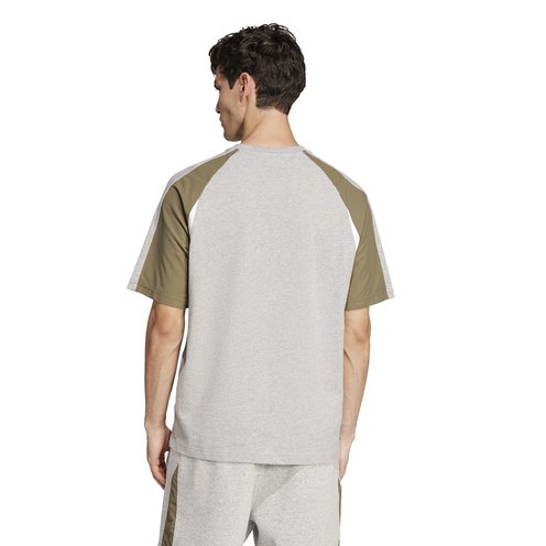 Introducing the Seasonal Essentials Colorblock T-shirt for men. This loose-fitting sportswear piece, made entirely from Better Cotton, offers a comfortable and sustainable choice for any occasion. The shirt features a striking color block design and a large printed BOS logo, harking back to simpler times and allowing one to dream of good old days. It's a nod to nostalgia, made with sustainable materials, and ready for the future.