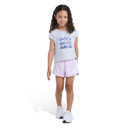 Get your little one ready for playtime with this adidas two-piece set. The tee features a liquid chrome triple stack puff-gel adidas logo on the front, adding a fun twist to their outfit.