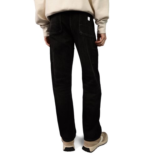 A baggy jean with extra room in the thigh, featuring authentic utility details.