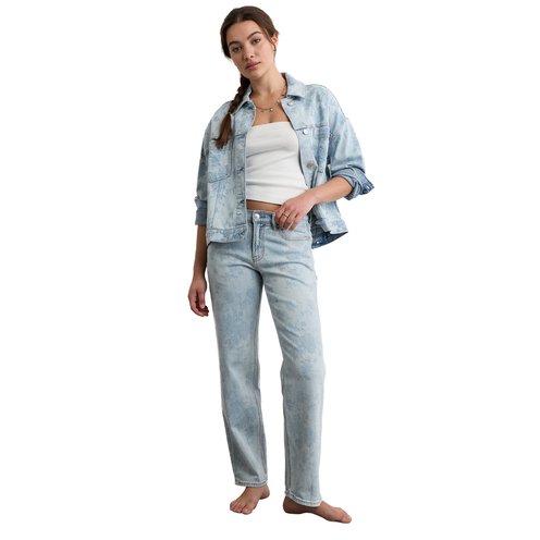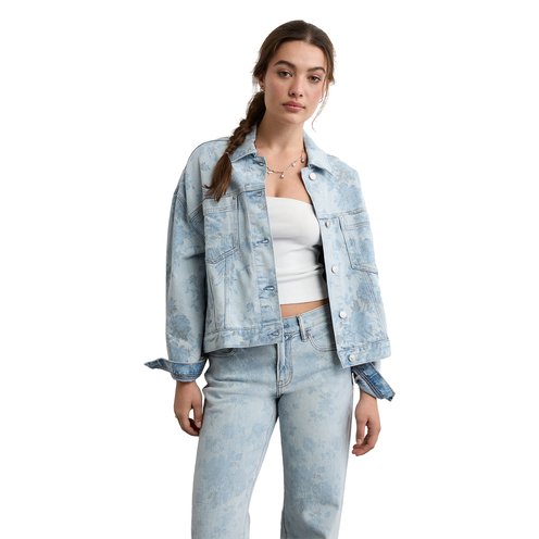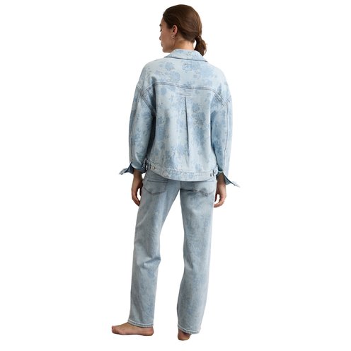 We laser-printed a floral design on this jacket and gave it a femme swing silhouette for a fresh take on a denim classic.