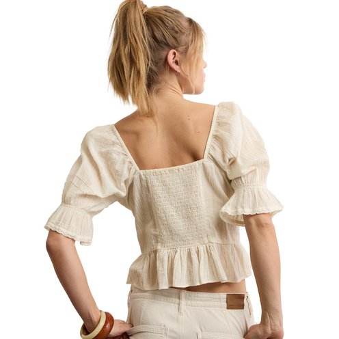It's giving peasant top. And we're here for it. Features cute puff sleeves and a pintuck pattern.