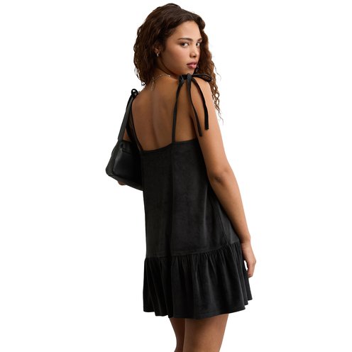 A playful, velvet mini dress with a tied bow detail, perfect for making a statement at any evening event.