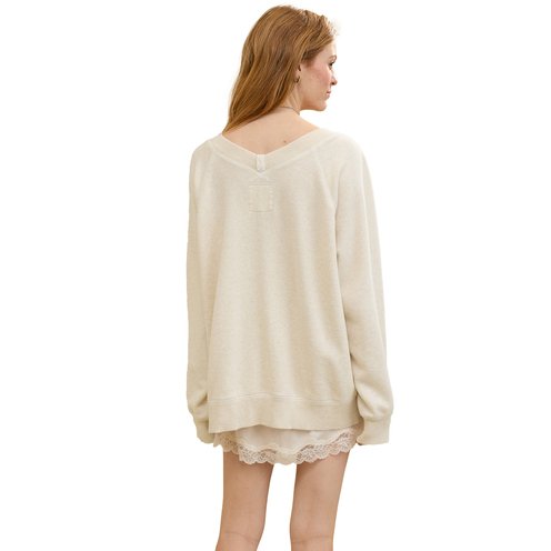 The big love is back in its iconic double v-neckline, now with a super cozy drape and a textural & light fleecy update. We added deets to obsess over, too!
