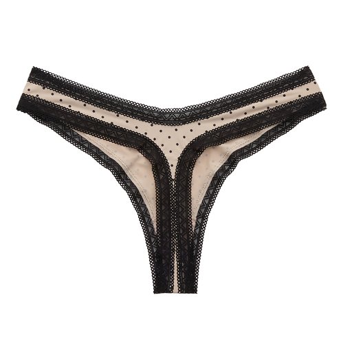 Smooth Microfiber in a low rise thong fit with lace trimming.