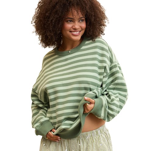 Aerie Women's Striped Oversized Crew Neck Sweater | Pajama & Lounge Tops | Apparel - Shop Your Navy Exchange - Official Site
