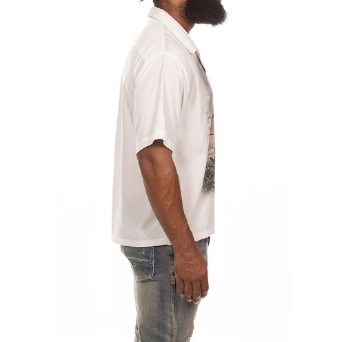 Cropped Short Sleeve Wide Body Woven With All Over Print And Label
