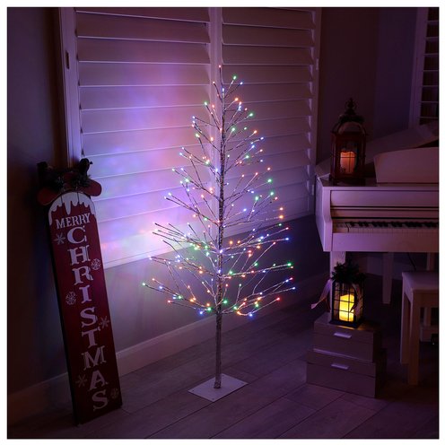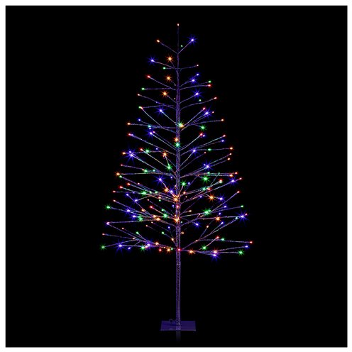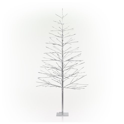 Brighten your holidays with the Alpine Corporation 60" Silver Artificial Christmas Tree. Measuring 29"L x 29"W x 60"H, this shimmering centerpiece features 180 built-in multi-colored LED lights that cast a radiant glow indoors or outdoors. The plug-in design ensures continuous illumination, while the durable base and ground stake offer stable setup wherever you celebrate.