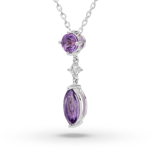 This Amethyst and Lab-created white sapphire drop necklace mesmerizes with rich color and sparkle.Crafted in sterling silver, this pendant features with round and marquise-shaped Amethyst with single Lab-created white sapphire in the middle. This pendant suspended on a diamond-cut cable chain with lobster closure.