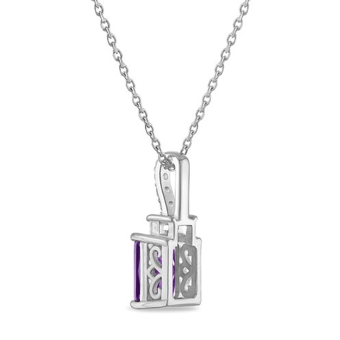Elegant and eye-catching, this Amethyst pendant bring something new to your look.Finished in sterling silver, this pendant features with 8.0x6.0mm octagon-cut Amethyst with Lab-created baguette accent. This pendant is suspended on a diamond-cut cable chain with lobster closure.