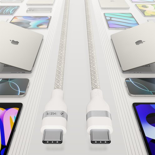 Power up fast with this 240W USB-C cable, delivering quick charging for laptops and phones with long-lasting durability. Its soft, tangle-free braided design is made from 100% recycled materials, offering over 30,000 bends and strength to withstand daily wear while keeping your charging setup efficient and eco-friendly.