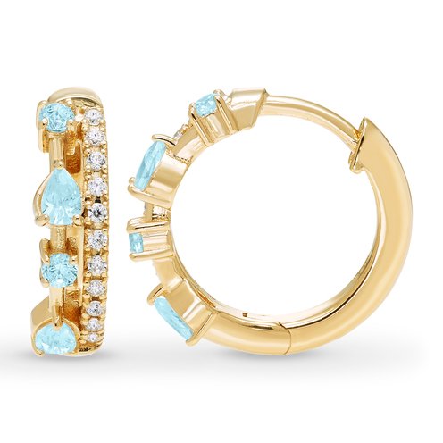 Aquamarine Pear And Round Cut With White Sapphire Accents Huggies | Gemstone Earrings | Women's - Shop Your Navy Exchange - Official Site