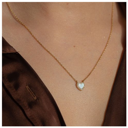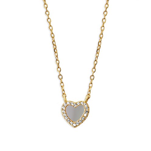 A Dainty Mother-of-pearl Heart With A Cubic Zirconia Halo Is Suspended From A 18-karat Gold-plated Sterling Silver Necklace For A Touch Of Romantic Style.