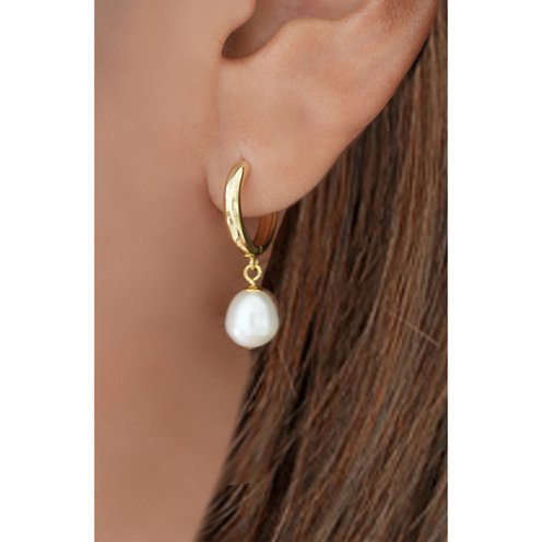 Warm 18-karat gold plates these huggie hoop earrings crafted from sterling silver and anchored with freshwater pearls.