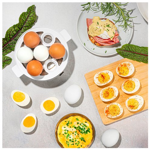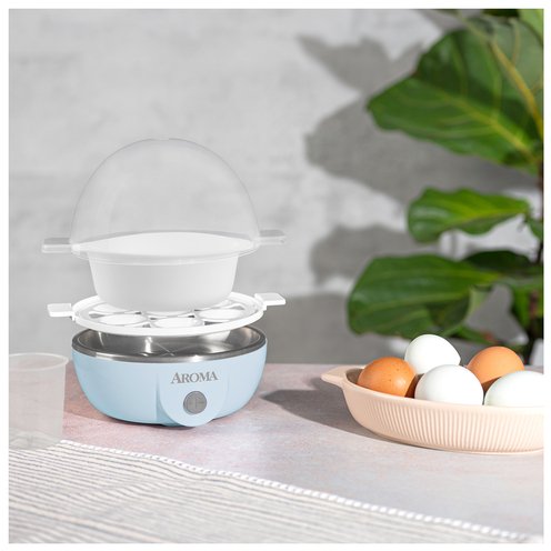 Aroma's Electric Egg Cooker is the key to overly easy eggs. Just add water, press start, and serve when the light turns off - no more timers! Our BPA-free measuring cup is pre-marked with helpful water lines, so you can add the right amount of water and steam eggs to perfection without watching the clock. Plus, the built-in shell pricking tool makes eggs even easier to peel. Our rapid egg cooker has a powerful heating element that starts steaming faster than a stovetop. The tall dome lid is also specially designed to evenly circulate and cycle steam. Aroma's XL egg cooker fits up to 7 eggs on a single tray without crowding your kitchen. This is more than just a hard-boiled egg cooker or electric egg poacher... it's an all-in-one, foolproof egg steamer that lets you cook eggs any way. Soft, medium, hard, or poached? You decide. The egg boiler will beep when they're ready to eat! Cook breakfast for the whole family and simplify meal prep for the week. All accessories are BPA-free and dishwasher-safe for quick, easy cleanup.