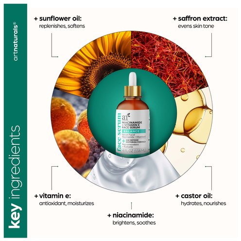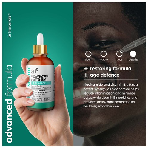 Transform your skin with artnaturals Niacinamide + Vitamin E Face Serum. This potent serum combines the power of niacinamide and vitamin E to deliver remarkable results. Niacinamide, also known as vitamin B3, helps minimize the appearance of pores, regulate oil production, and fade dark spots, leaving your skin smoother and more refined.
