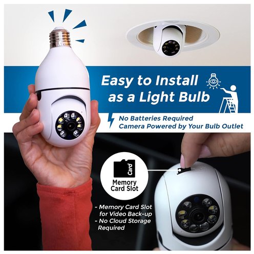 - No Monthly Cloud Storage Required - camera has a memory card slot that keeps your recordings safe (Memory card not included)