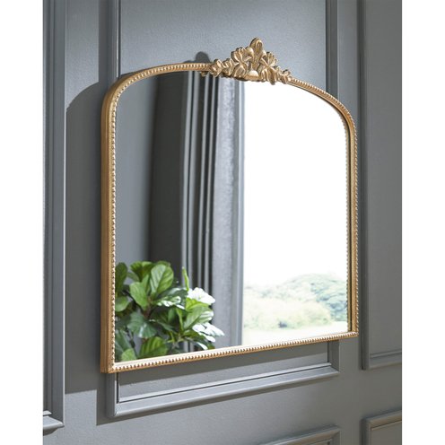 The delicate goldtone framing of this accent mirror adds a sense of stately elegance to your decor. Well-suited to traditionally inspired rooms, it lends a romantic feel to the space above a console or dresser. Reflecting your taste for timeless styling, the mirror is topped with an exquisitely detailed adornment.