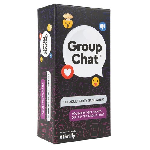 Group Chat is a hilarious adult party game where you build text threads, and anonymously vote with thumbs down + hearts to decide who the best and worst texter was. Whoever gets the most red hearts wins the round, and the whoever gets the most thumbs down gets kicked out of the chat next round. Raise the stakes and play until someone wins 7 rounds!