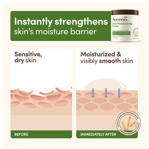 Aveeno Daily Moisturizing Cream with prebiotic oat & shea butter for body, face, and hands.
