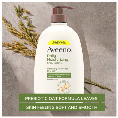 Aveeno Daily Moisturizing Body Lotion with soothing prebiotic oat intensely nourishes dry skin.