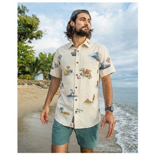 The Vagabond Button-Up is crafted from our signature recycled Vagabond™ poly blend stretch fabric - lightweight, breathable, wrinkle-resistant, and built to move. Designed for modern explorers, it features custom artwork, a hidden side-zip pocket for your essentials, and rugged construction that handles every season with style and ease.