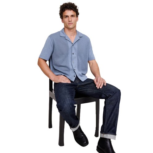 A cross between your favorite polo and a resort shirt. We love the open, airy knit panels of this one—in 100% cotton.
