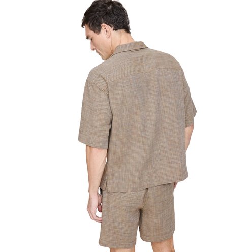 The vibe is vacation. We wanted this shirt to feel at-ease so we kept the fit relaxed and reached for a beautiful cotton fabric we love for its subtle texture. Plus, we opted for an on-trend shorter length that still feels easy.