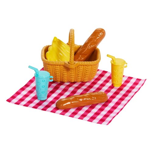 With Barbie Family and Friends dolls and toys, kids can play out the fun and friendship among this close squad! Barbie 'Malibu' and little sister Chelsea dolls are heading out on a picnic, and kids have all the pieces to play out the classic moment. Nine themed pieces include fashion accessories, a basket, food, drinks and blanket! For even more storytelling fun, kids can collect other toys in the Family and Friends line. Dolls cannot stand alone. Colors and decorations may vary.