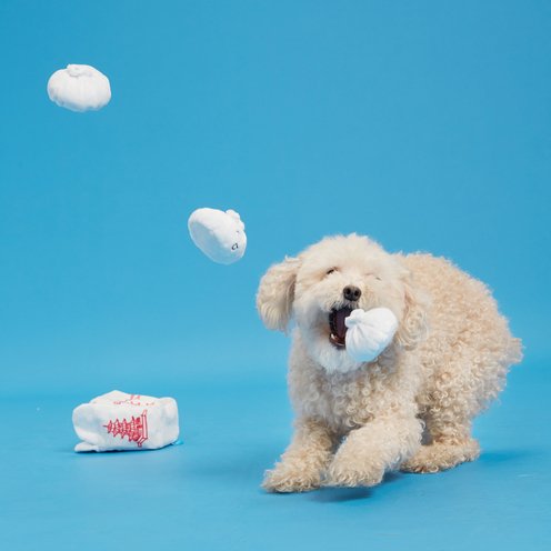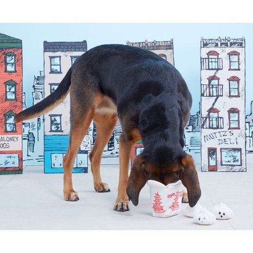 This dumplings take-out dog toy is all that and dim sum! Made with a squeaker in each dumpling and a crazy crinkle carton, Andi�s Famous Dumplings is a best-selling, 4-in-1 toy that really delivers the fun!